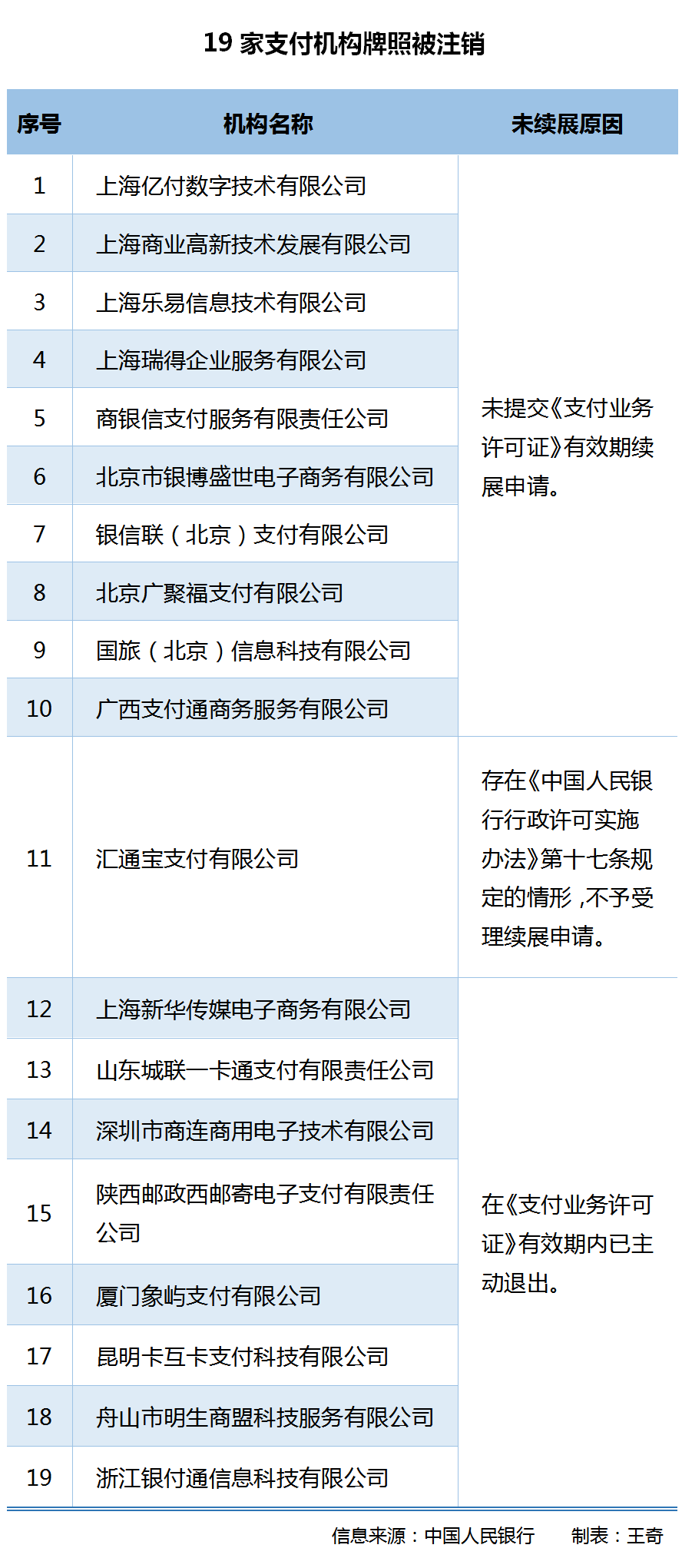 記者注意到,在此之前,根據(jù)央行公布的支付機構(gòu)牌照續(xù)展結(jié)果,在總計發(fā)放過的271張支付機構(gòu)牌照中,已有51張牌照被注銷。