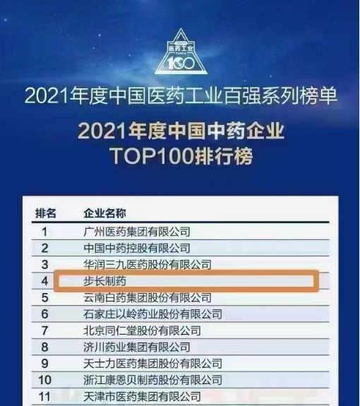2022年7月12日-15日,“米思會(huì)(中國(guó)醫(yī)藥健康產(chǎn)業(yè)共生大會(huì))在浙江湖州舉行,萬眾矚目的2021年中國(guó)醫(yī)藥工業(yè)百?gòu)?qiáng)系列榜單在會(huì)議上揭曉。步長(zhǎng)制藥憑借扎實(shí)的研發(fā)生產(chǎn)實(shí)力及專業(yè)學(xué)術(shù)推廣能力榮登“中國(guó)中藥企業(yè)TOP100排行榜”第四,位列民營(yíng)企業(yè)第一。