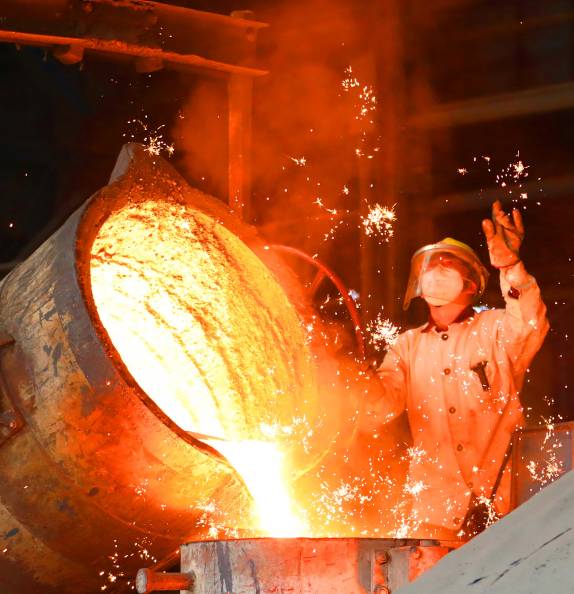 在中國一重集團公司生產(chǎn)車間,工人在進行生產(chǎn)作業(yè)。新華社發(fā)(陳建軍 攝)