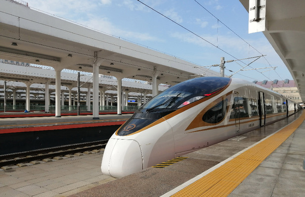 復(fù)興號高寒動車組在牡丹江站等待發(fā)出。資料照片