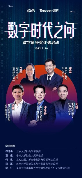 2022年,澎湃新聞與騰訊公司共同成立澎湃-數(shù)字原野研究工作室。7月26日,澎湃-數(shù)字原野研究工作室宣布設立“數(shù)字原野獎”。作為全國首個由主流新媒體與科技企業(yè)聯(lián)合發(fā)起的跨學科數(shù)字中國研究獎項,“數(shù)字原野獎”將從多學科、多角度、多領(lǐng)域關(guān)注數(shù)字化轉(zhuǎn)型期的社會交往,觀察因數(shù)字而變的經(jīng)濟關(guān)系,注重理論研究與社會生產(chǎn)結(jié)合,鼓勵社會各界共同研究數(shù)字中國,提問數(shù)字中國、求解數(shù)字中國。