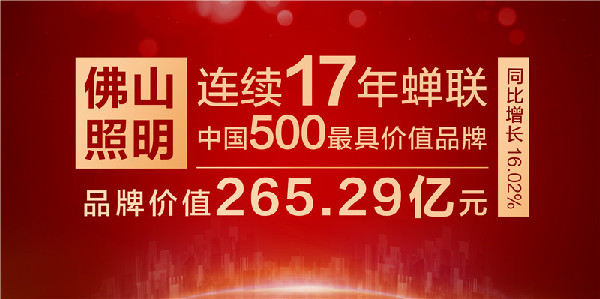 聚合品牌力量,提升品牌價值,再次入選“中國500最具價值品牌”榜單,是佛山照明品牌提升的又一階段性成果,佛山照明將以這份榮譽為前進動力,在新的征程上不斷創(chuàng)造新的業(yè)績、鑄就新的輝煌,為推動新時代中國品牌建設(shè)作出貢獻。