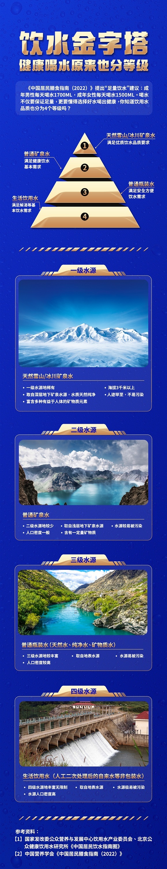 健康時(shí)報(bào)官方平臺(tái)發(fā)布了飲水金字塔科普長(zhǎng)圖,以水源地為核心標(biāo)準(zhǔn)將日常飲用水分為四級(jí),包括高海拔雪山冰川礦泉水、普通礦泉水、江河湖泊水及自來(lái)水。雪山/冰川礦泉水作為一級(jí)好水,大多來(lái)自于海拔3000米以上的雪山冰川地區(qū),富含均衡豐富的礦物質(zhì),長(zhǎng)期飲用對(duì)健康大有裨益。