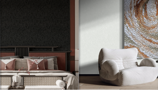 由于高精密墻布的支數(shù)較多所以很柔軟,在與墻面的貼合程度上更勝一籌,不容易出現(xiàn)空鼓現(xiàn)象,因此領(lǐng)繡無縫墻布不僅立體感強,上墻也很平整服帖。