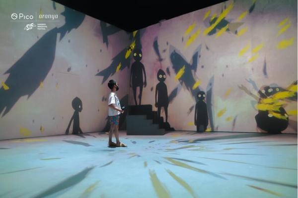 SIF 2022的32部展演作品涵蓋來自威尼斯、戛納、翠貝卡等國際電影節(jié)的VR/AR獲獎(jiǎng)佳作,例如《掌聲(Clap)》以新穎的形式讓觀眾與VR中的角色進(jìn)行互動(dòng),串聯(lián)起了虛擬與真實(shí)世界;《紅螞蟻(RedAntz)》以互動(dòng)MV的形式帶領(lǐng)觀眾進(jìn)入一個(gè)Palberta曲風(fēng)的迷幻異域世界。這些作品一改往年集中的呈現(xiàn)方式,沿阿那亞近一公里海岸線分布散開設(shè)立多個(gè)活動(dòng)區(qū)域。不僅有800+平方米的主活動(dòng)區(qū)、穿插裝置化作品,更有精彩的水下VR體驗(yàn)以及在孤獨(dú)圖書館設(shè)立的特殊體驗(yàn)區(qū)。