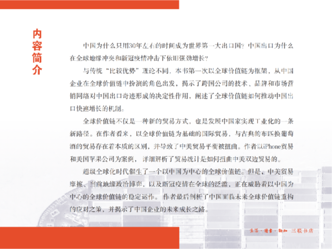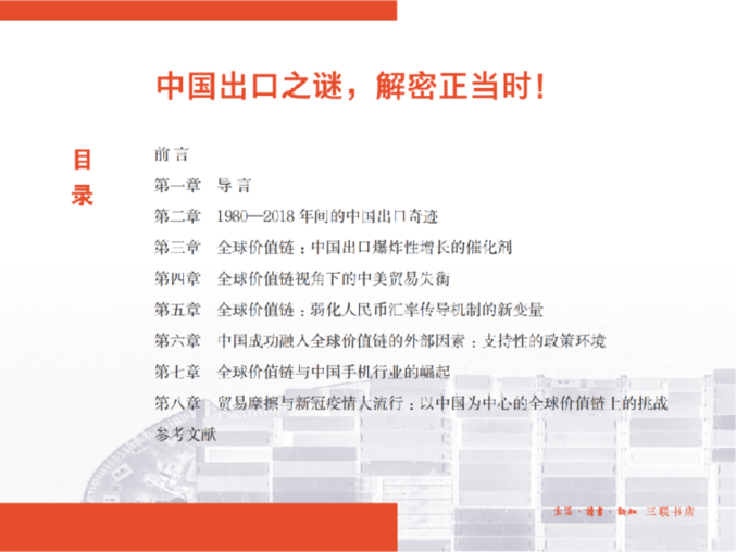 中國為什么只用30年左右的時(shí)間成為世界第一大出口國?中國出口為什么在全球地緣沖突和新冠疫情沖擊下依舊強(qiáng)勁增長?近日,由生活·讀書·新知三聯(lián)書店出版的《中國出口之謎:解碼“全球價(jià)值鏈”》對此進(jìn)行了一一解答,全面、深刻地解析了中國出口奇跡。該書上市一周已位列當(dāng)當(dāng)經(jīng)濟(jì)類新書第一名、京東社科類新書總榜第七名。