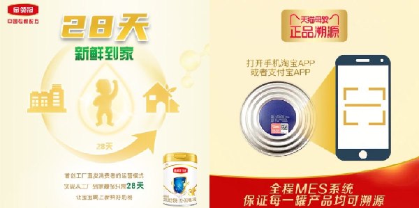 為讓寶寶吃到更新鮮的口糧,天貓聯(lián)手品牌開啟奶粉溯源計劃,從牧場源頭優(yōu)化供應鏈,推出28天新鮮直送服務——從出廠到送達不超過28天,刷新了“新鮮”的概念。君樂寶和伊利金領冠已經(jīng)率先上線該服務。