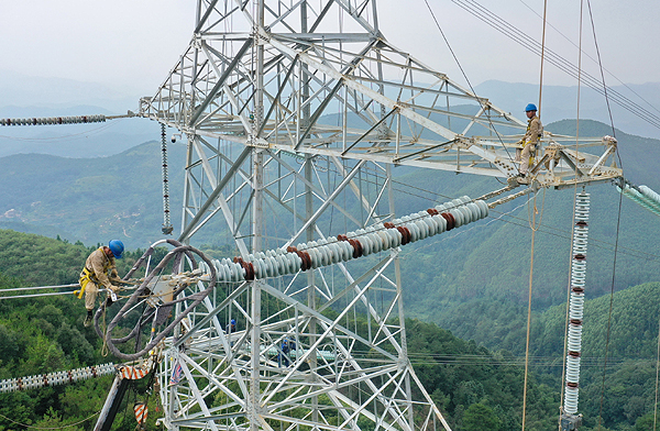 閩粵電力聯(lián)網(wǎng)線路工程日前全線貫通,實(shí)現(xiàn)福建電網(wǎng)與廣東電網(wǎng)物理“牽手”。圖為國網(wǎng)福建省送變電工程有限公司施工人員在閩粵電力聯(lián)網(wǎng)線路工程現(xiàn)場作業(yè)。
