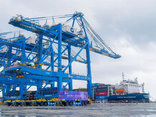欽州自動(dòng)化集裝箱碼頭操作人員正在進(jìn)行設(shè)備技術(shù)交流。資料照片