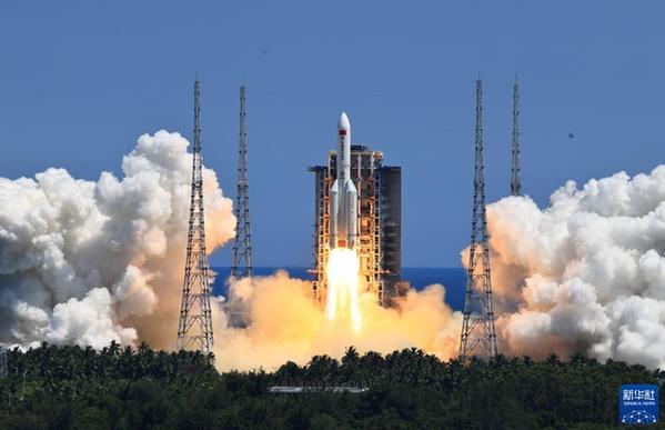 2022年7月24日,搭載問天實驗艙的長征五號B遙三運載火箭,在我國文昌航天發(fā)射場點火發(fā)射。新華社記者 李剛 攝