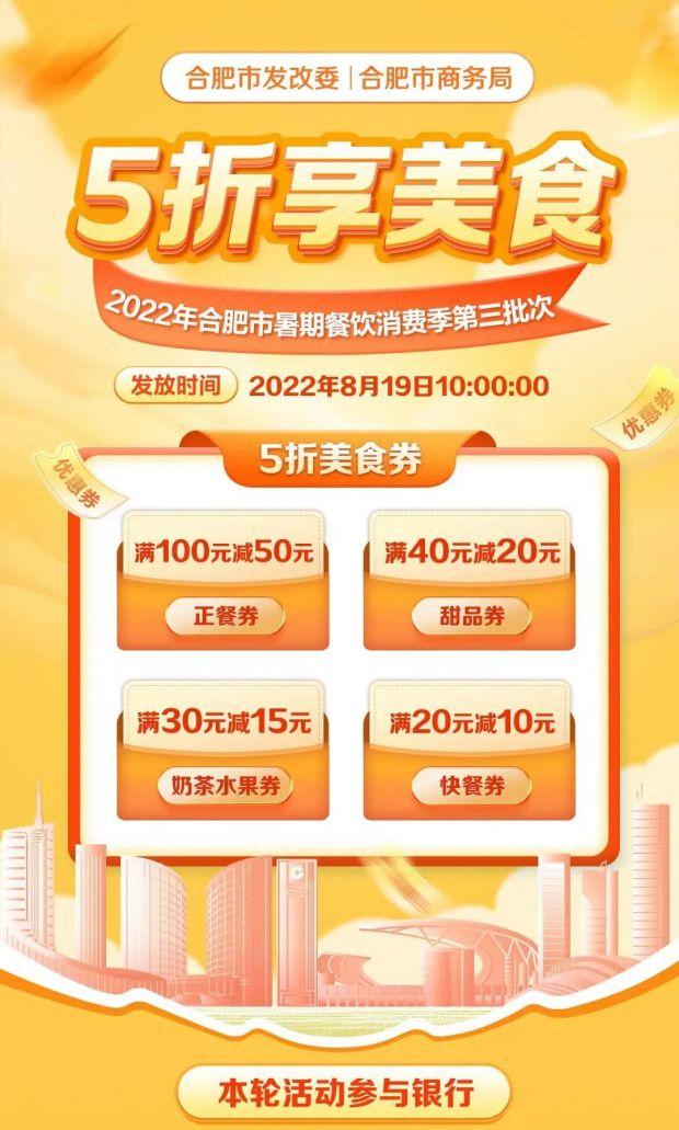 合肥也于8月19日開始發(fā)放暑期消費(fèi)季第三批消費(fèi)券,共計1844萬元。據(jù)了解,此次發(fā)放的是餐飲消費(fèi)券,分為滿100元減50元正餐券、滿40元減20元甜品券、滿30元減15元奶茶水果券和滿20元減10元快餐券,采取電子券形式發(fā)放,消費(fèi)者可通過登錄多家銀行APP領(lǐng)取。