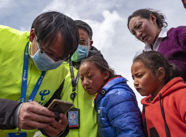中國電信集團拉薩分公司當(dāng)雄電信局的技術(shù)人員在烏瑪塘鄉(xiāng)巴嘎村幫助村民調(diào)試無線網(wǎng)絡(luò)。資料照片