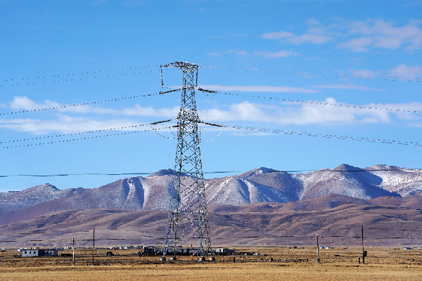 圖為2020年11月29日在西藏阿里地區(qū)普蘭縣拍攝的西藏阿里與藏中電網(wǎng)聯(lián)網(wǎng)工程輸電鐵塔。資料照片