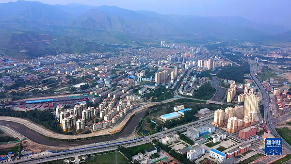 青海省西寧市湟源縣城全景。(湟源縣委宣傳部供圖,無(wú)人機(jī)照片)
