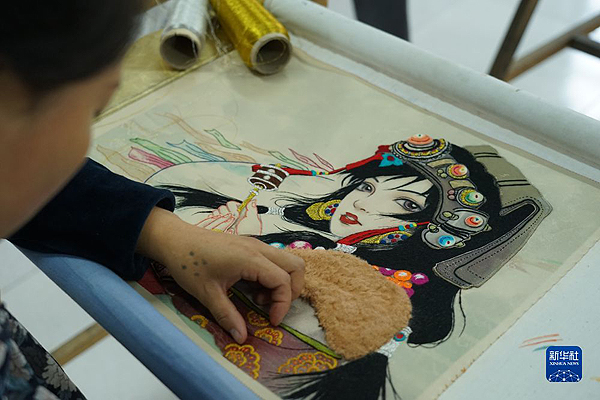 8月26日,在湟源縣丹噶爾皮繡研制開(kāi)發(fā)有限公司,繡娘制作皮繡。新華社記者解統(tǒng)強(qiáng) 攝