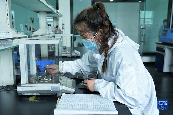 8月26日,在青海凱金新能源材料有限公司產(chǎn)品檢測(cè)中心實(shí)驗(yàn)室,工作人員檢測(cè)產(chǎn)品品質(zhì)。新華社記者解統(tǒng)強(qiáng) 攝