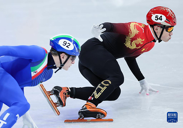 2022年2月5日,在首都體育館舉行的北京2022年冬奧會(huì)短道速滑項(xiàng)目混合團(tuán)體接力決賽中,中國(guó)隊(duì)奪得冠軍。這是中國(guó)隊(duì)選手任子威(右)在比賽中。新華社記者 蘭紅光 攝