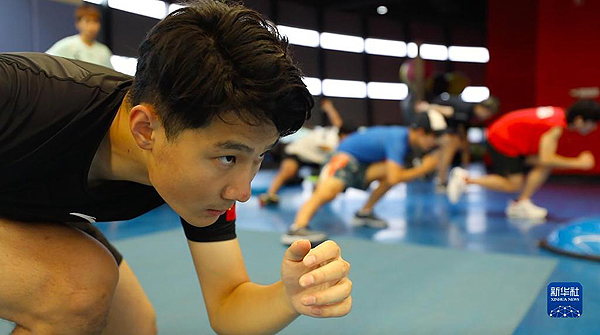 任子威在國(guó)家體育總局冬季運(yùn)動(dòng)管理中心綜合訓(xùn)練館進(jìn)行訓(xùn)練(2022年8月9日攝)。新華社記者 趙建通 攝