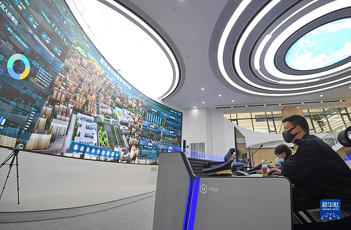 工作人員在雄安新區(qū)容東城市運(yùn)營管理中心監(jiān)管平臺(tái)工作(2022年3月29日攝)。新華社記者 朱旭東 攝