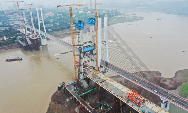 李家沱長江復(fù)線橋為重慶軌道交通18號線的控制性工程,工程起于九龍坡區(qū)九龍半島,止于巴南區(qū)李家沱,全長約1306米,主橋為雙塔雙索面斜拉橋,于現(xiàn)有的李家沱長江大橋上游側(cè)約52米處平行跨越長江。