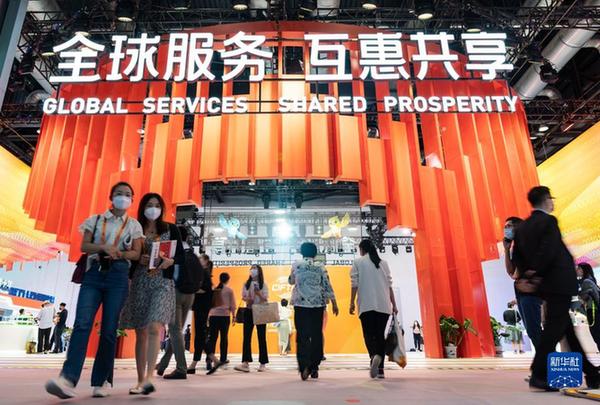 觀眾在2022年中國(guó)國(guó)際服務(wù)貿(mào)易交易會(huì)上參觀中國(guó)服務(wù)貿(mào)易成就展專區(qū)(2022年9月1日攝)。新華社記者 才揚(yáng) 攝