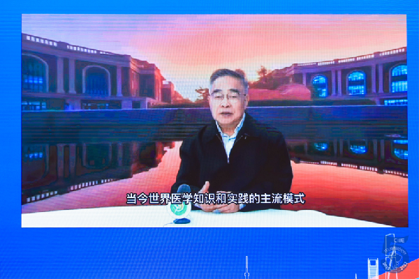 圖為:中國(guó)工程院院士、天津中醫(yī)藥大學(xué)名譽(yù)校長(zhǎng)張伯禮視頻演講