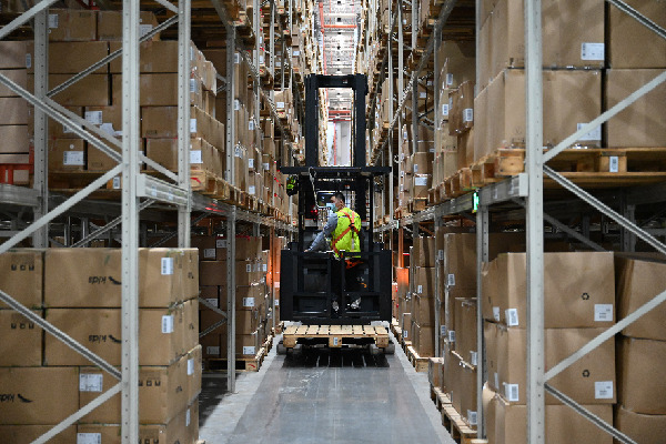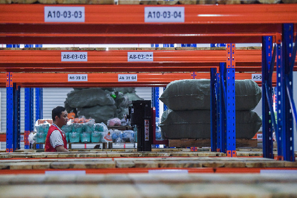 工人在晉江市安踏集團一體化物流產(chǎn)業(yè)園忙碌。