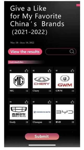 為展示中國品牌在國內(nèi)國際雙循環(huán)相互促進的新發(fā)展格局下的全球化競爭力,新華社民族品牌工程辦公室、中國經(jīng)濟信息社聯(lián)合多家機構(gòu)從2022年3月起共同推出了“2022外國人喜愛的中國品牌”征集活動。活動通過參考主流媒體、行業(yè)協(xié)會、電商平臺、企業(yè)信息平臺、企業(yè)官網(wǎng)信息及《財富》雜志世界500強、中國500強等各類數(shù)據(jù),遴選出涵蓋汽車、家電、醫(yī)藥、酒類、食品飲料、化妝品、服飾鞋帽、電子消費品、金融、交通物流、網(wǎng)絡(luò)服務(wù)等11類、共137個品牌的初選名單,并于5月10日起面對海外消費者開啟網(wǎng)絡(luò)投票。