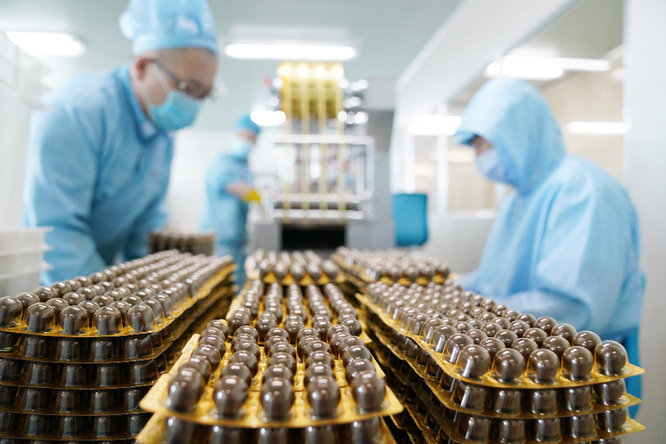 在哈藥集團(tuán)世一堂中藥飲片有限責(zé)任公司的生產(chǎn)車間,工作人員在生產(chǎn)藥品。(資料照片)