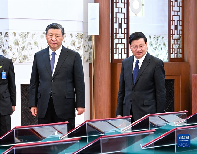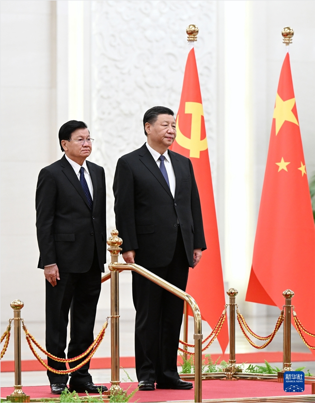 新華社北京11月30日電 11月30日,中共中央總書(shū)記、國(guó)家主席習(xí)近平在人民大會(huì)堂同老撾人民革命黨中央總書(shū)記、國(guó)家主席通倫舉行會(huì)談。雙方強(qiáng)調(diào),要秉持“長(zhǎng)期穩(wěn)定、睦鄰友好、彼此信賴、全面合作”方針和“好鄰居、好朋友、好同志、好伙伴”精神,政治上互尊互信、經(jīng)濟(jì)上互惠互利、人文上相知相親,不斷深化中老命運(yùn)共同體建設(shè),為推動(dòng)構(gòu)建人類命運(yùn)共同體作出積極努力和貢獻(xiàn)。