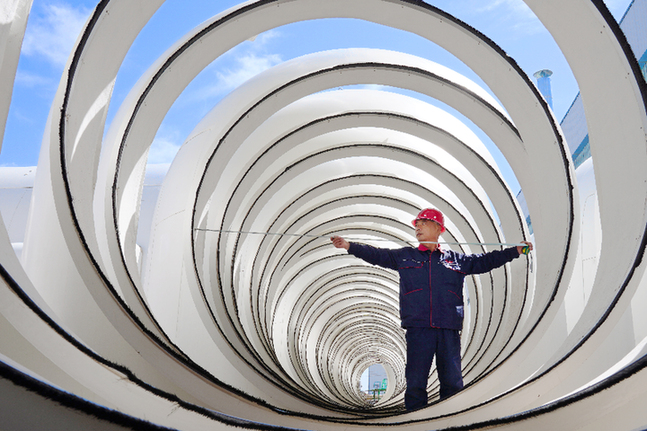 通榆是吉林西部的“風(fēng)口”,風(fēng)電裝機(jī)容量占全省1/3。在通榆三一風(fēng)電裝備技術(shù)有限責(zé)任公司的零碳智造產(chǎn)業(yè)園里,工人們正在車間忙著組裝主機(jī),院內(nèi)一個(gè)個(gè)巨大葉片壯觀排列等待裝車。公司行政經(jīng)理陳永春說,近年來基礎(chǔ)設(shè)施改善,企業(yè)運(yùn)輸時(shí)間成本降低了,設(shè)備遠(yuǎn)銷新疆、甘肅、云南等省區(qū)。