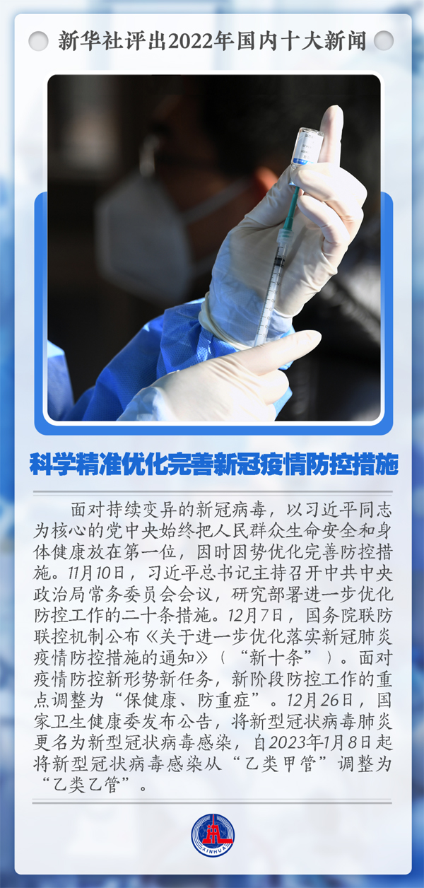 ? 新華社北京12月29日電 新華社評出2022年國內(nèi)十大新聞(按事件發(fā)生時間先后為序)