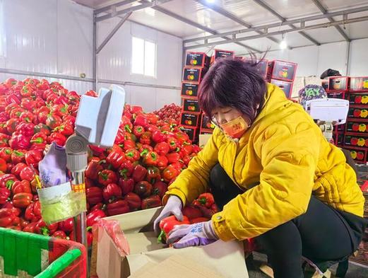 圖為山東壽光東斟灌村村民在裝箱打包彩椒。記者 陳國峰 攝