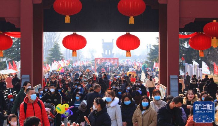 ↑1月22日,游人在山東省臨沂市沂蒙山龜蒙景區(qū)新春廟會(huì)上游玩。新華社發(fā)(武紀(jì)全 攝)