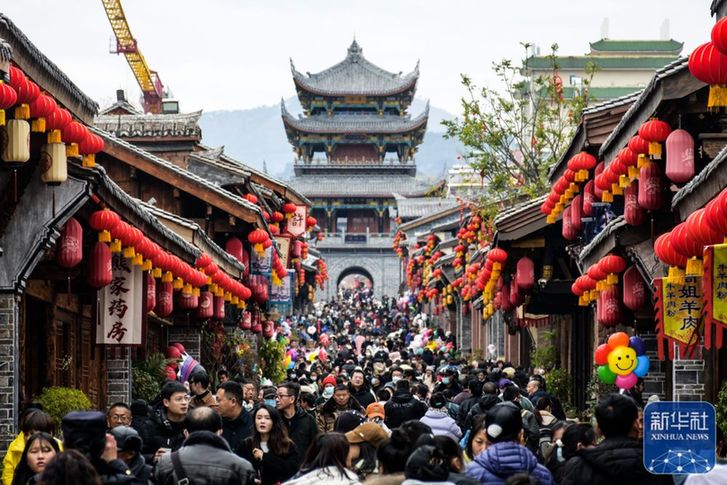 ↑1月27日,游客在四川省西昌市建昌古城游覽。新華社發(fā)(李結(jié)義 攝)