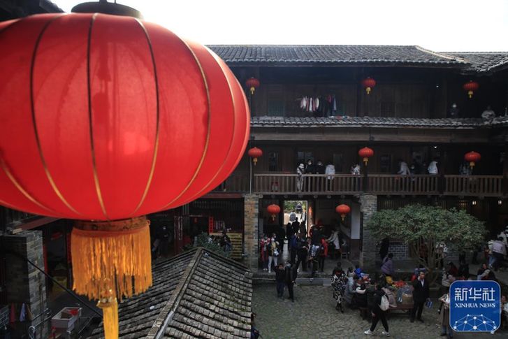 ↑1月25日,游客在福建省龍巖市永定區(qū)土樓景區(qū)游玩。新華社發(fā)(周楊東 攝)