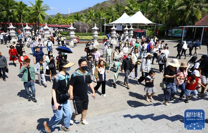 ↑1月25日,海南省三亞市南山文化旅游區(qū)游人如織。新華社發(fā)(陳文武 攝)