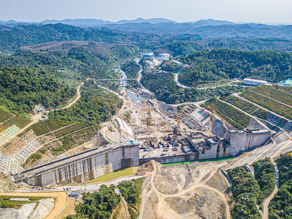 這是2月12日拍攝的邁灣水利樞紐工程(無人機照片)。