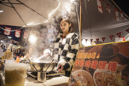 “小時候最喜歡吃媽媽做的湯圓,自己平常也喜歡做吃的,就選擇了這一行?!睗L滾熱氣伴隨陣陣叫賣聲,她常常一面熟練地捏著糯米面團,一面熱情地招呼顧客。