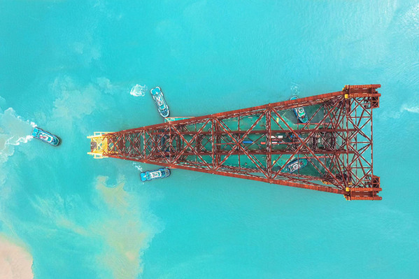 亞洲第一深水導管架“?;惶枴蓖虾匠龊?。資料照片