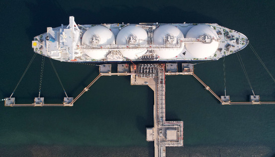 一艘液化天然氣運輸船靠泊在中國石化天津LNG接收站“1號泊位”進行卸船作業(yè)。新華社記者 趙子碩 攝