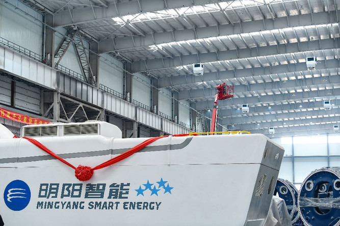 “去年3月開(kāi)工建設(shè),誰(shuí)能想到不到一年的時(shí)間,就能建成這么大規(guī)模的項(xiàng)目?!痹擁?xiàng)目負(fù)責(zé)人劉瑋介紹,從一片荒山到大型廠房排布,這里很快將建成大型陸上風(fēng)電整機(jī)、齒輪箱、發(fā)電機(jī)、碳?;旌铣L(zhǎng)葉片等核心部件的智能制造基地,具備年產(chǎn)1000臺(tái)套以上陸上超大型風(fēng)電整機(jī)及核心部件的生產(chǎn)能力。