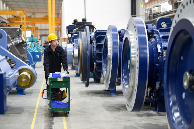 2月13日,工人在南高齒(包頭)傳動(dòng)設(shè)備有限公司生產(chǎn)車間內(nèi)作業(yè)。