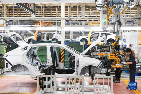 這是2022年6月16日拍攝的重慶長安汽車股份有限公司智能化工廠作業(yè)現(xiàn)場。新華社記者 王全超 攝