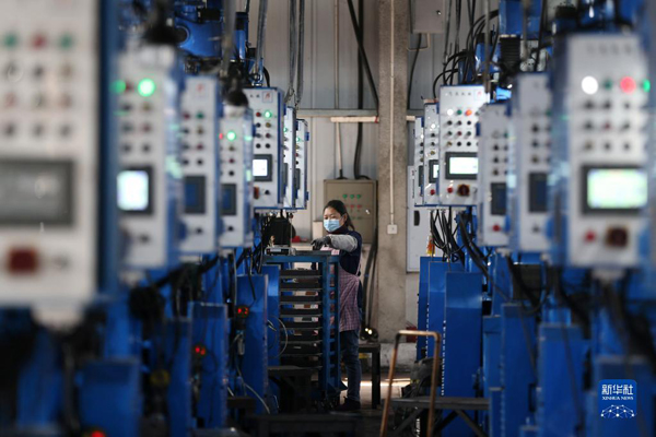 1月31日,工人在重慶市黔江區(qū)工業(yè)園區(qū)一電子科技公司生產(chǎn)車間加工電子元件。新華社發(fā)(楊敏攝)