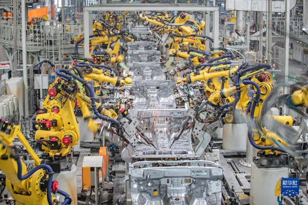 3月1日,在長(zhǎng)城汽車重慶永川生產(chǎn)基地焊裝車間,智能化焊接機(jī)器人在進(jìn)行焊接作業(yè)。新華社記者 黃偉 攝