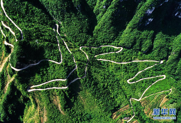 這是重慶市巫山縣下莊村通往外界的公路(2020年7月3日攝,無(wú)人機(jī)照片)。新華社記者 王全超 攝