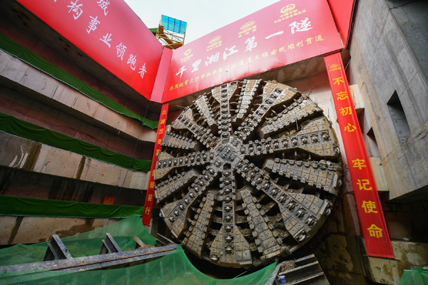 這是三月十二日拍攝的長沙市湘雅路過江通道右線隧道貫通現(xiàn)場。