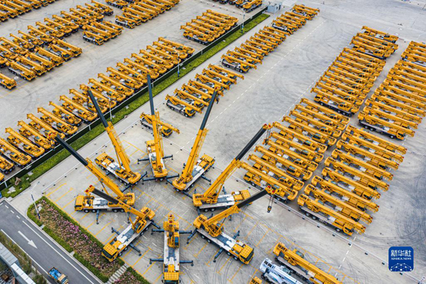 這是2022年5月9日拍攝的江蘇徐工集團(tuán)重型機(jī)械有限公司的產(chǎn)品調(diào)試場(chǎng)(無(wú)人機(jī)照片)。新華社發(fā)