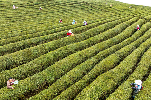 隨著氣溫回暖,多地春茶開采,茶農(nóng)忙著采摘春茶供應(yīng)市場。